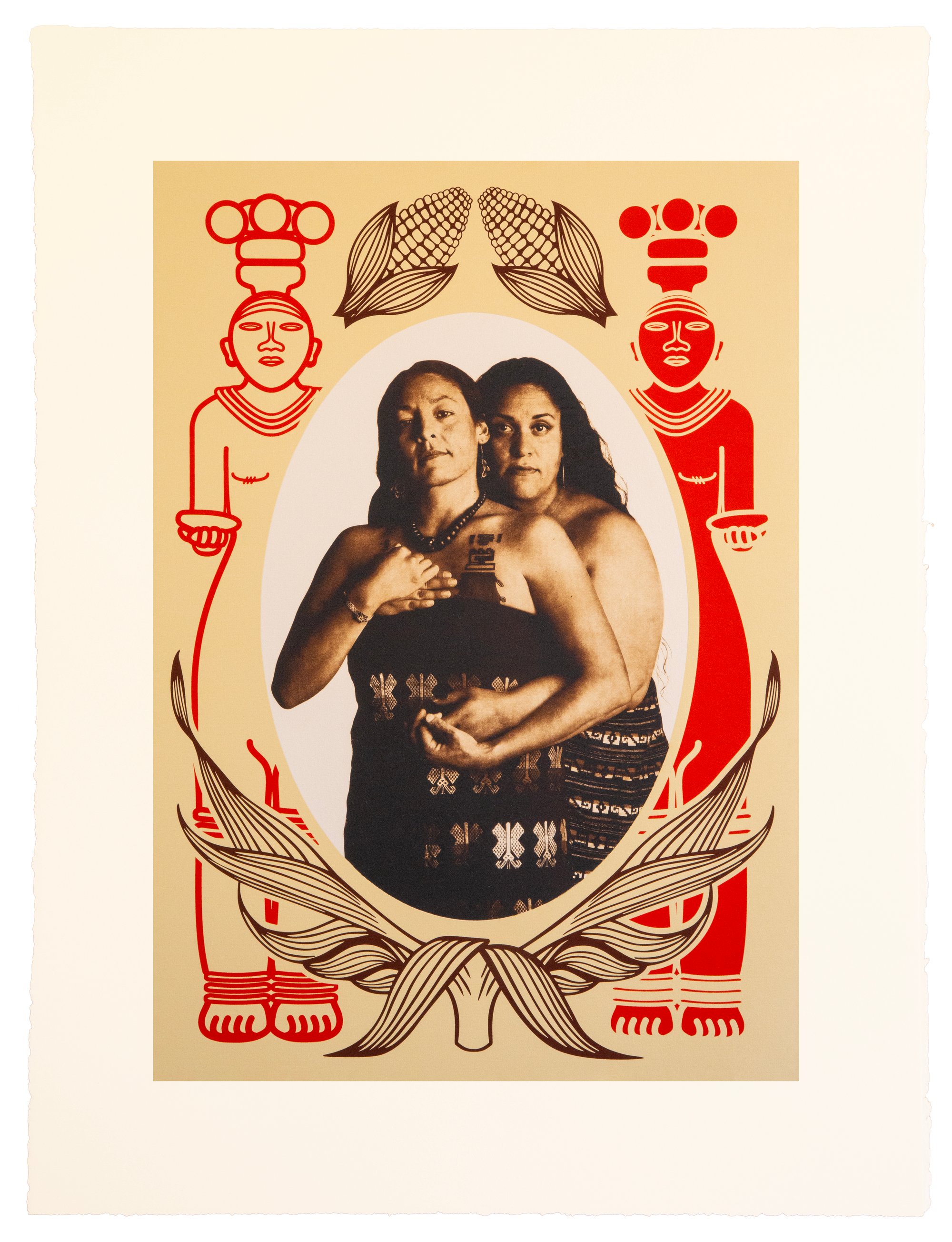 Through the symbolism of the póporo, a relic traditionally used by Indigenous communities in Colombia since 300 CE to store lime for coca chewing, and reflecting on the balance between feminine and masculine forces, this print reimagines the póporo as a genderless form, with surgical scars where breasts once lay are now held each hand.
